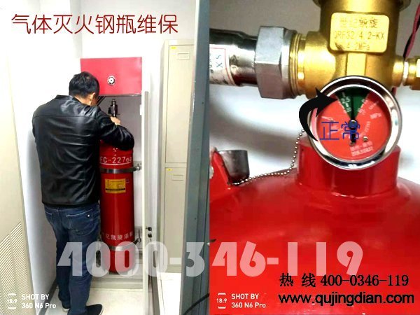 1)檢查每個滅火劑瓶組和驅動氣體瓶組的壓力,壓力表的壓力指示值應在綠色區域內。